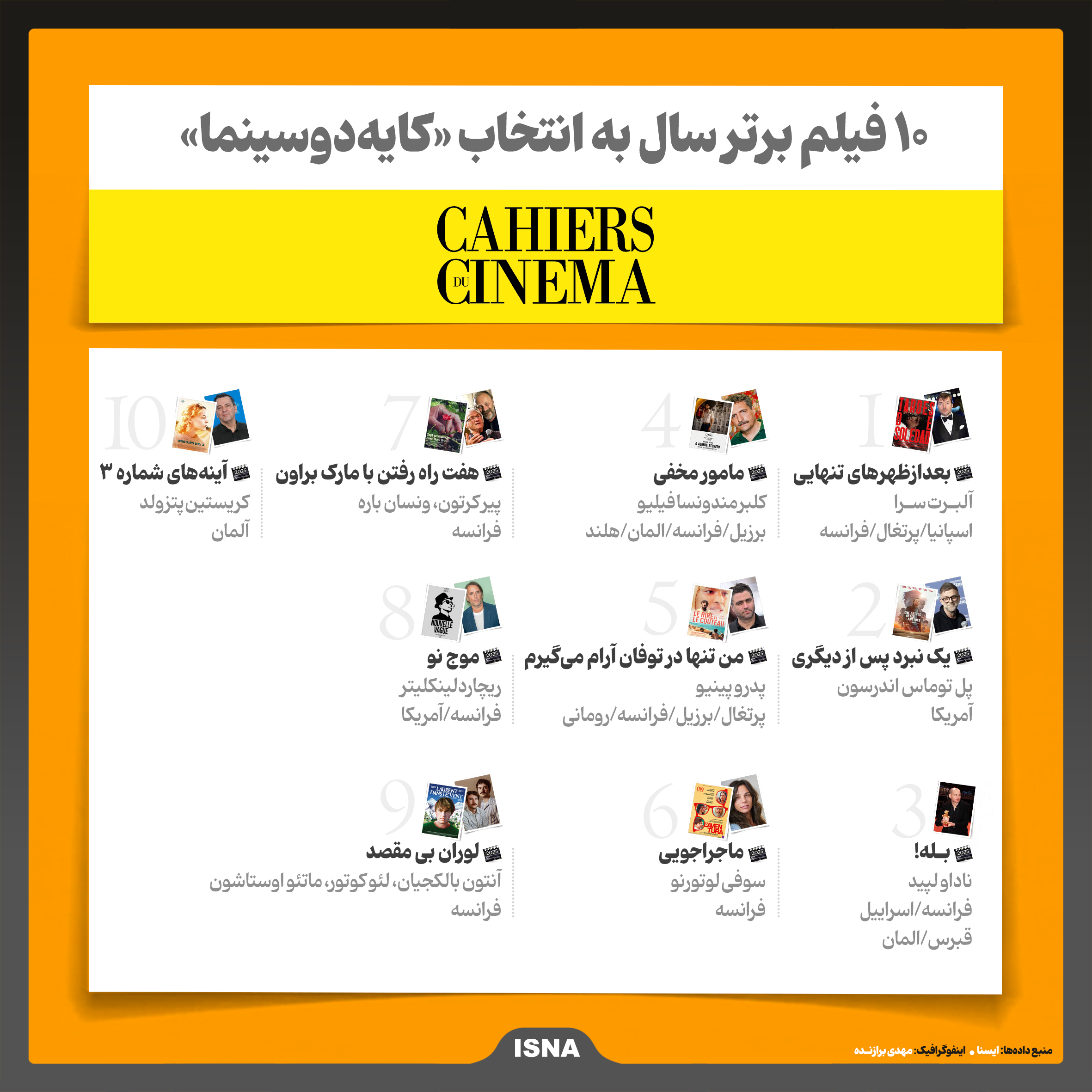 با نزدیک شدن به پایان سال ۲۰۲۵، دو نشریه معتبر جهانی «کایهدوسینما» و «تایم»، انجمن منتقدان فیلم نیویورک و هیات ملی نقد آمریکا فهرست برترین فیلمهای سال را منتشر کردند.