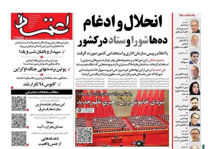 مردم درگیر مشکلات اقتصادی مدیران دولتی سرگرم حاشیه سازی، سونامی جزیره فساد، گام بعدی دولت کنترل قیمت‌ها باشد، دستور یلدایی دولت و...از جمله تیترهای روزنامه‌های یکشنبه ۲۳ آذر هستند.