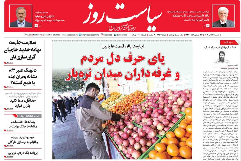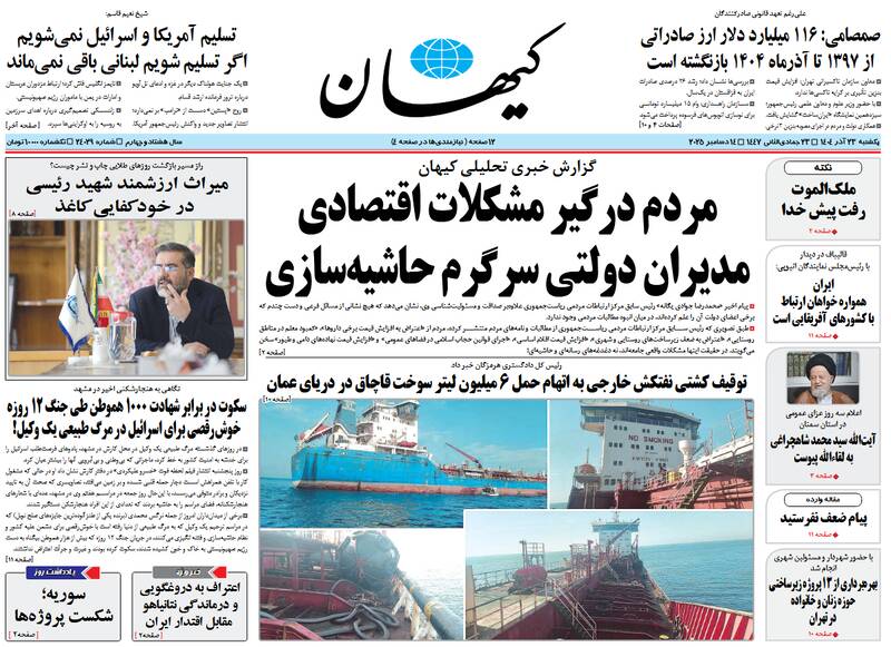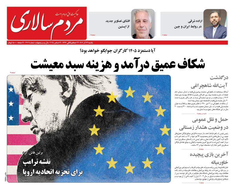 عکس/ صفحه نخست روزنامه‌های‌ یکشنبه ۲۳ آذر ۱۴۰۴