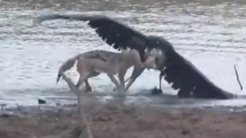 در این ویدئو یک شغال را می بینید که یک لک لک بزرگ را در نبردی طاقت فرسا شکست می دهد و شکار می کند. این صحنه ها در پارک ملی کروگر در آفریقای جنوبی ثبت شده است.
