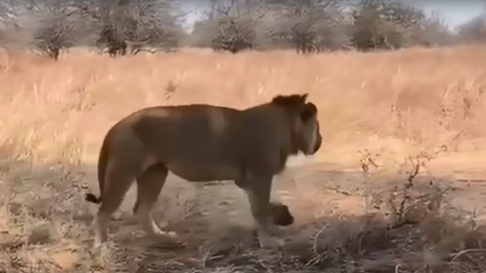 وقتی سلطان جنگل تلاش می کند که مثل پلنگ از درخت بالا برود!