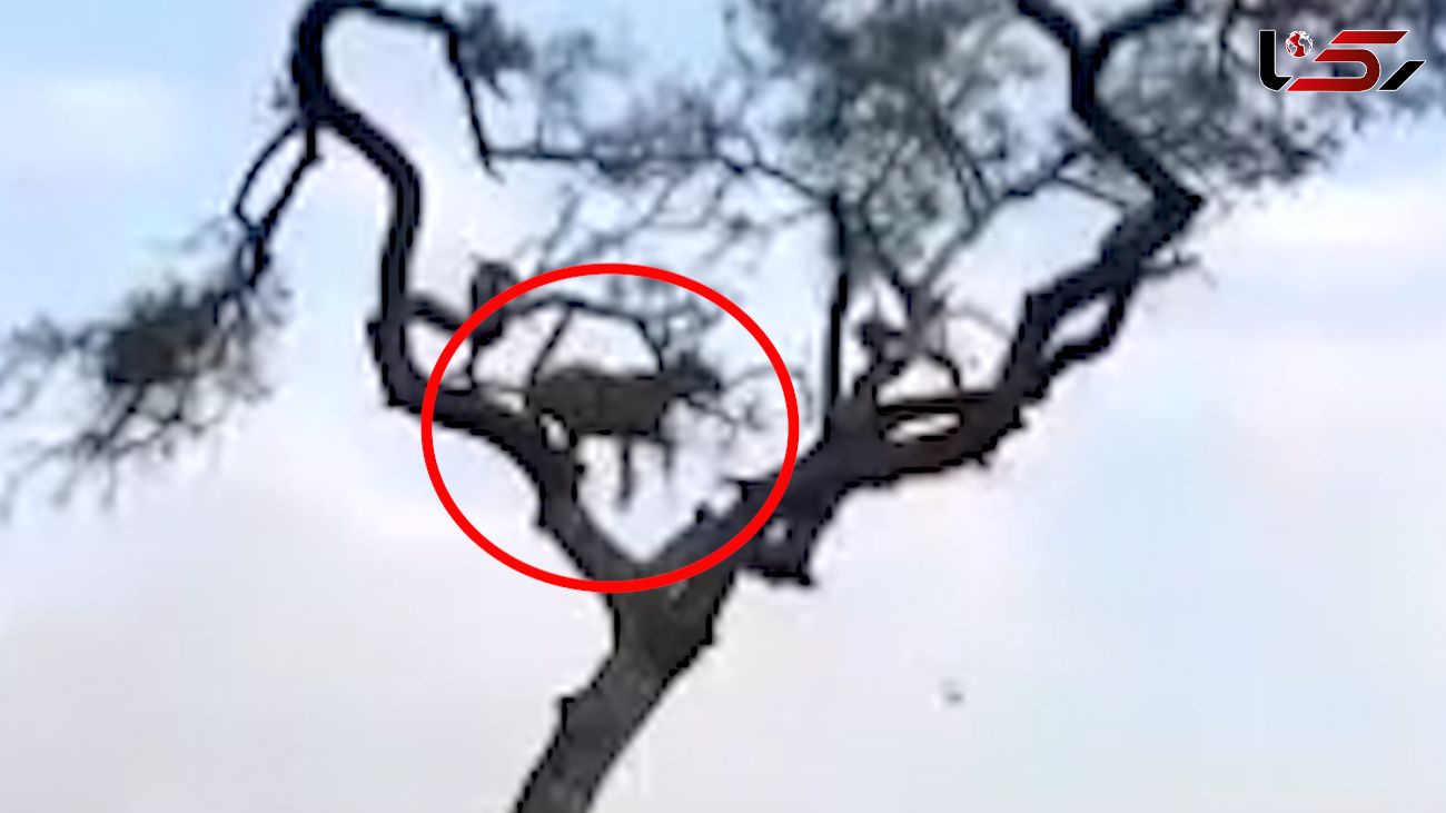 یک یوزپلنگ روی درخت قصد حمله به یک میمون که روی شاخه های درخت آویزان بود را داشت. این میمون برای فرار از دست یوزپلنگ تمام تلاش خود را به کار بست. همان طور که در این فیلم مشاهده می کنید این میمون پس از کلی شاخه به شاخه پریدن برای فرار از یوزپلنگ، دست آخر با یک حرکت هوشمندانه توانست یوزپلنگ این شکارچی قهار را شکست داده و جان خودش را نجات دهد.