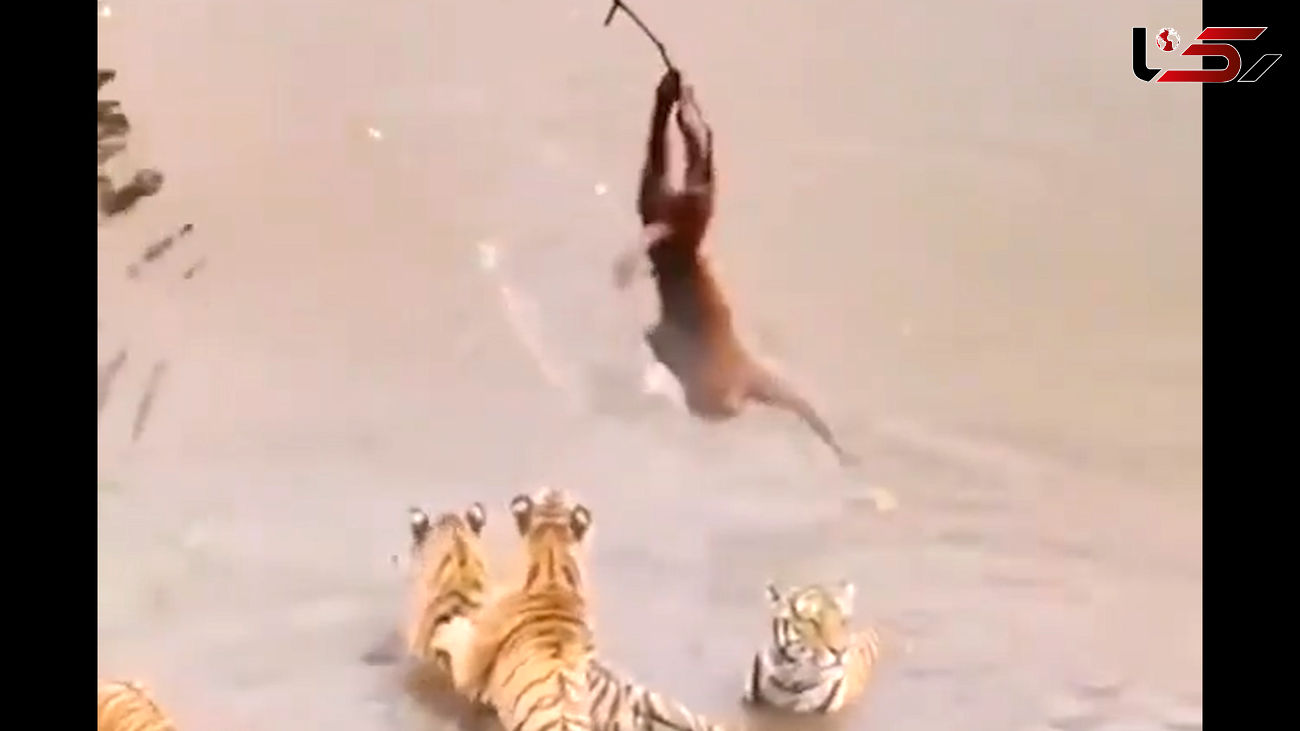 میمون ها برای به دست آوردن موز از درخت ها بالا می روند. یک میمون روی درخت موجود در رودخانه مشاهده شد که در حالی که چهار ببر میمون را از پایین درخت محاصره کرده بودند اما این میمون برای رسیدن به موز در ابتدایی ترین قسمت شاخه درخت از هیچ تلاشی دریغ نکرد. جالب است که درنهایت میمون عاشق موز ببرها را پس زد.