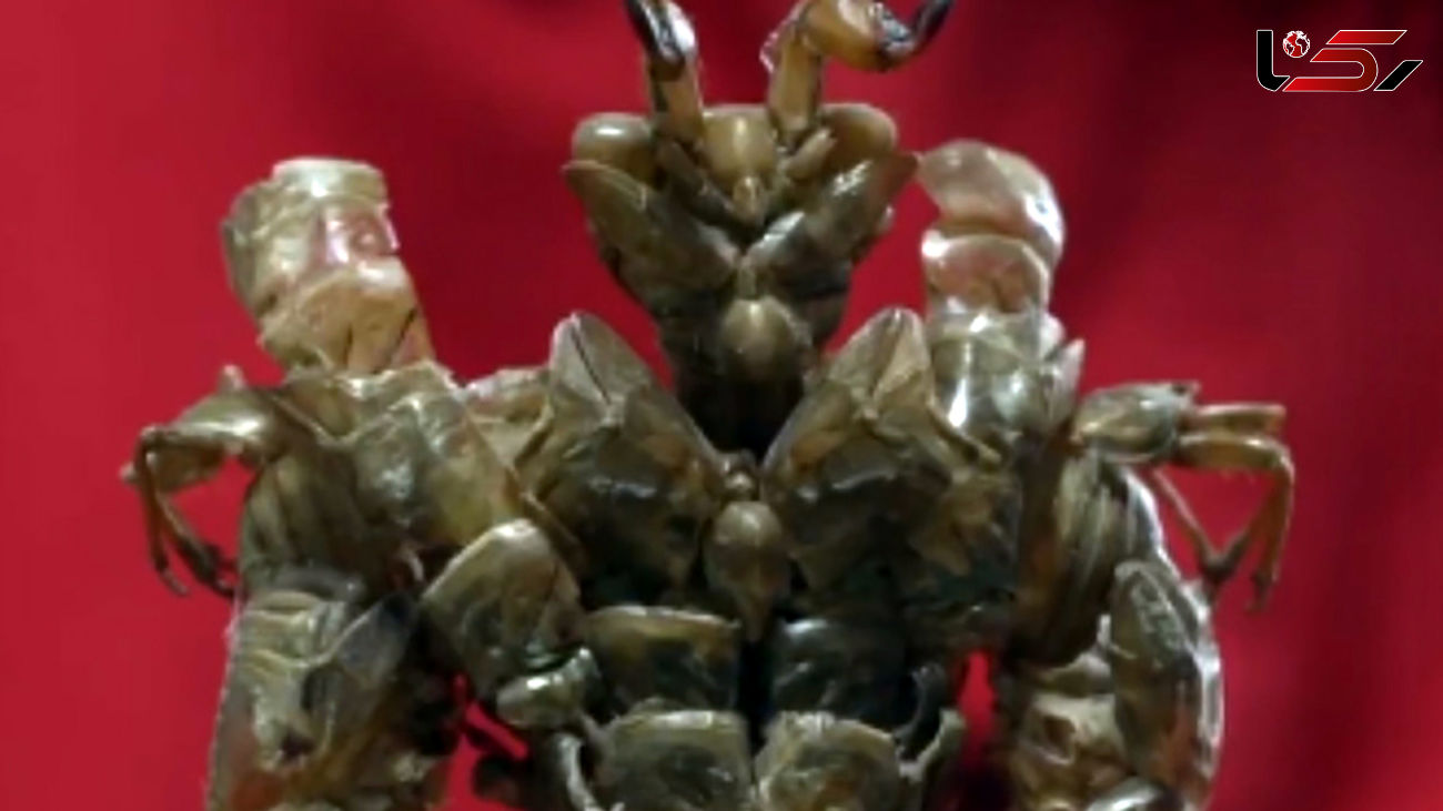 مجسمه سازی از هنرهایی است که با خلاقیت ارتباط مستقیم دارد. با انواع وسایل در محیط پیرامون می توان مجسمه ساخت. اما عجیب ترین مجسمه ها را در این فیلم مشاهده می کنید. شاید باورتان نشود اما در ساخت این مجسمه ها از پوست جیرجیرک استفاده شده است. شاید این مجسمه ها چندش آور باشد اما خاص بودن آنها در نوع خود جالب است.