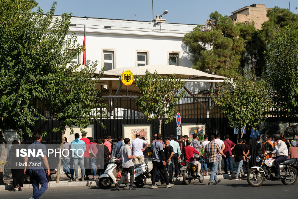 ازدحام پناهجویان افغانستانی مقابل سفارت آلمان در ایران + عکس