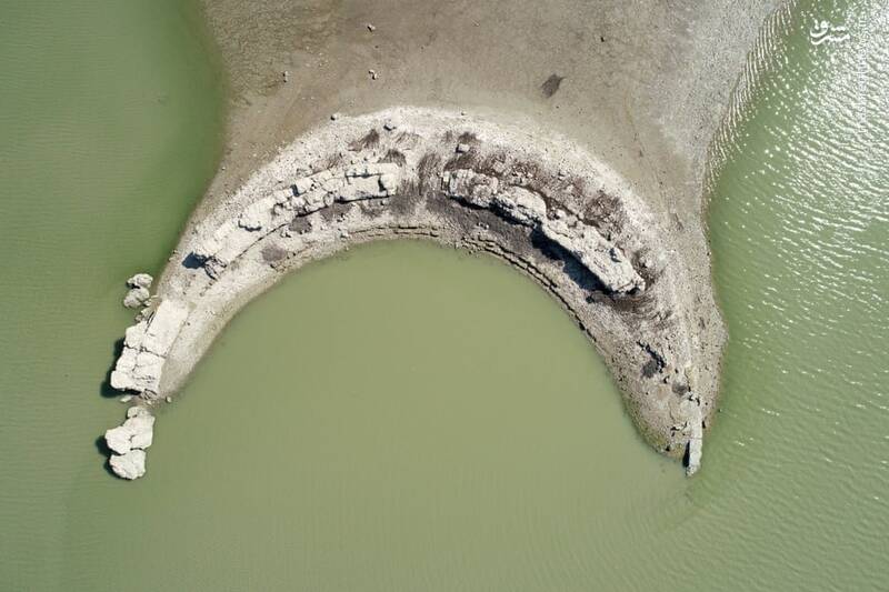 بیرون آمدن محوطه باستانی در اثر کاهش آب سد + عکس