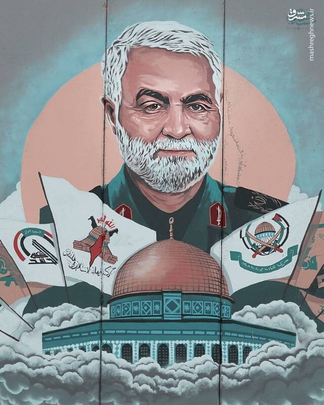 نقاشی چهره حاج قاسم در مرز لبنان و فلسطین + عکس
