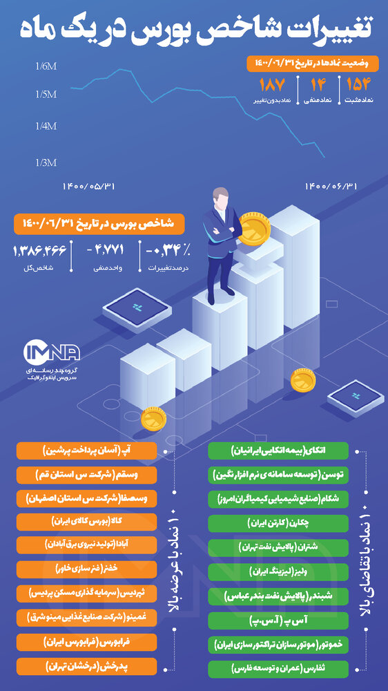تغییرات شاخص بورس در یک ماه+ اینفوگرافیک