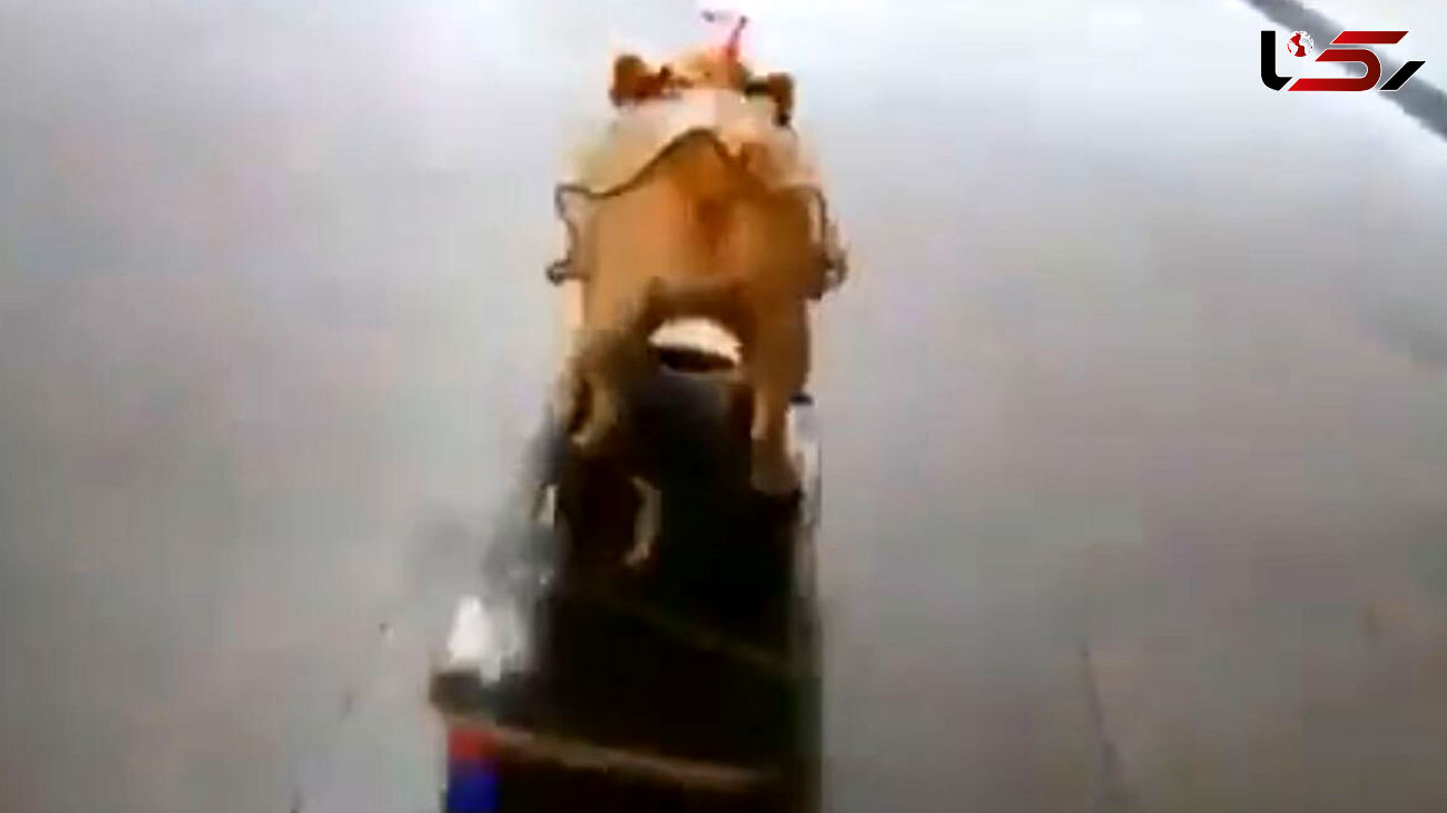 رکنا : اسکیت برد سواری یک سگ در خیابان سوژه دوربین ها شد.
