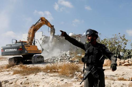 بولدوزر نیروهای اسراییلی در حال تخریب یک خانه فلسطینی + عکس