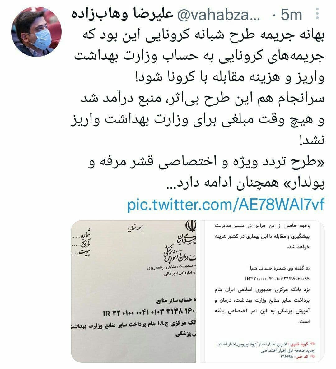علیرضا وهاب زاده، مشاور وزیر سابق بهداشت: