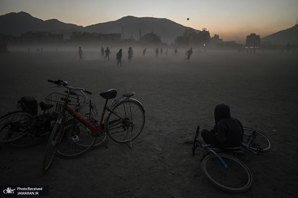 پسر افغان در حال تماشای بازی فوتبال در کابل + عکس