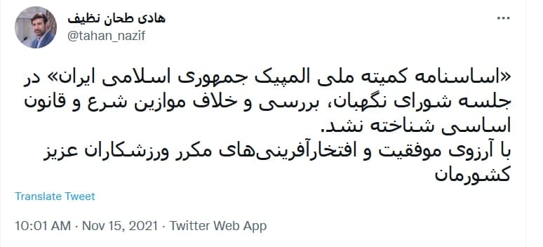 هادی طحان نظیف سخنگوی شورای نگهبان در توییتی نوشت: