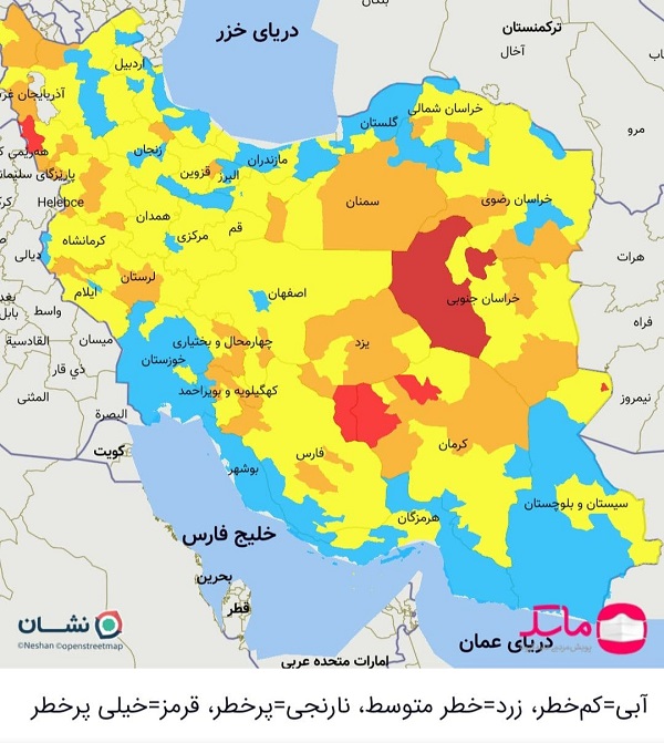 گفتنی است با کاهش شهرستانهای قرمز، در حال حاضر 8 شهرستان در وضعیت قرمز، 58 شهرستان در وضعیت نارنجی و 236 شهر در وضعیت زرد و 146 شهرستان در وضعیت آبی قرار دارند.