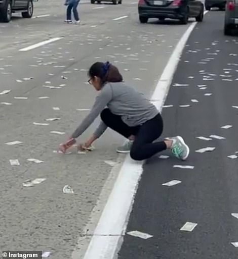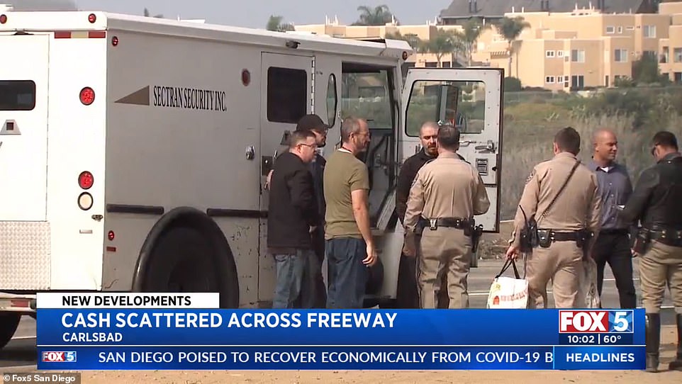 هجوم مردم به ماشین واژگون شده حمل پول در آمریکا +‌عکس