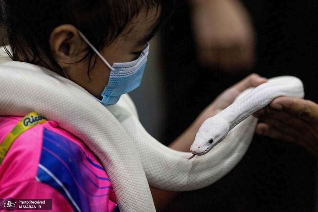 دوستی دختربچه تایلندی با مار پیتون + عکس