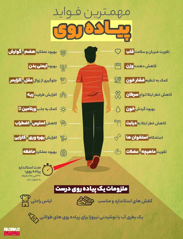 اینفوگرافیک| پیاده روی، راه حل شگفت انگیز پیشگیری از بیماری‌ها