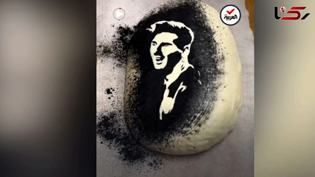 رکنا : چهره اسطوره های فوتبال بر روی لقمه نان نقاشی شده است.