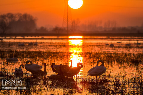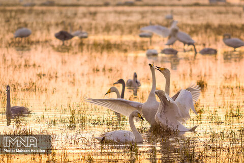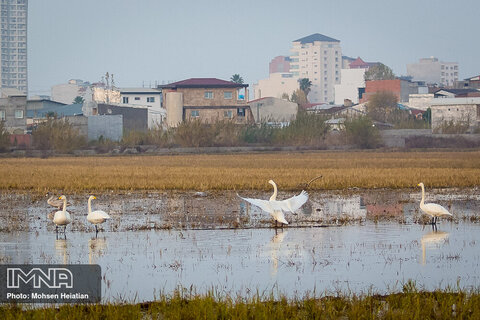 بازگشت قوهای مهاجر به تالاب های مازندران+ عکس