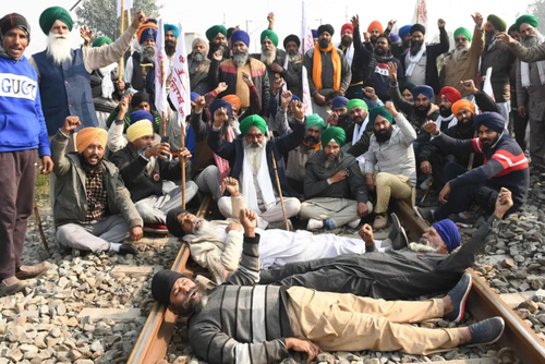 اعتراض کشاورزان هندی با بستن ریل قطار + عکس