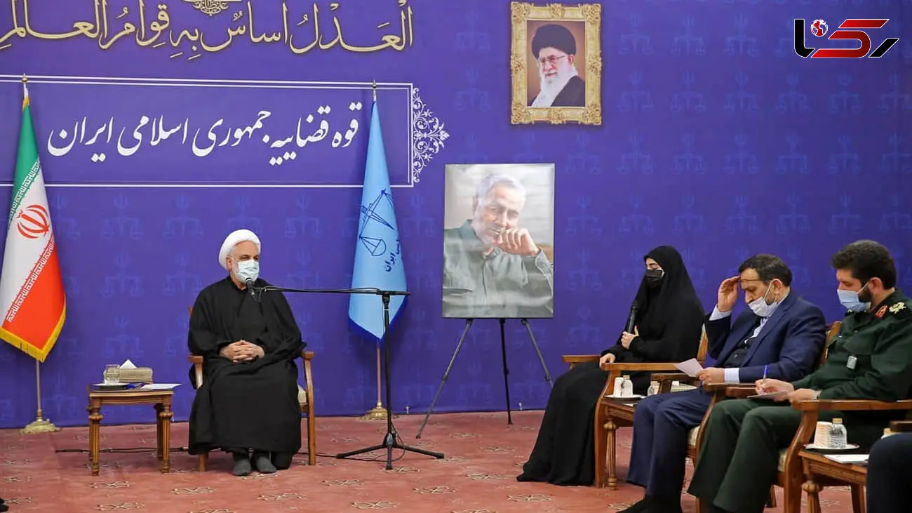 پیش از سخنان رئیس دستگاه قضا، «زینب سلیمانی» فرزند شهید سلیمانی طی سخنانی ضمن قدردانی از اقدامات ستاد حقوق بشر قوه قضاییه برای رسیدگی به پرونده ترور شهید سلیمانی و همراهانش اظهار کرد: در کنار تمام فعالیتهای فرهنگی و رسانهای که برای شهید سلیمانی در حال انجام است، نباید از حوزه پیگیری کیفری پرونده ترور این شهید بزرگوار غافل ماند.