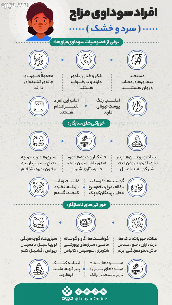 اینفوگرافیک| نشانه های افراد سوداوی مزاج سرد خشک