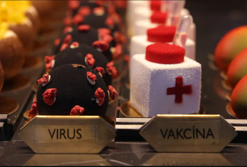شیرینی های "ویروس" و "واکسن" در ویترین یک شیرینی فروشی + عکس