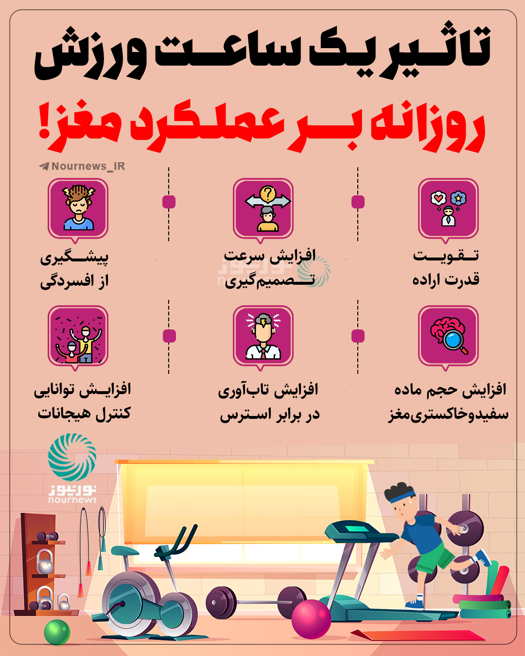 اینفوگرافیک/تاثیر یک‌ساعت ورزش روزانه بر عملکرد مغز