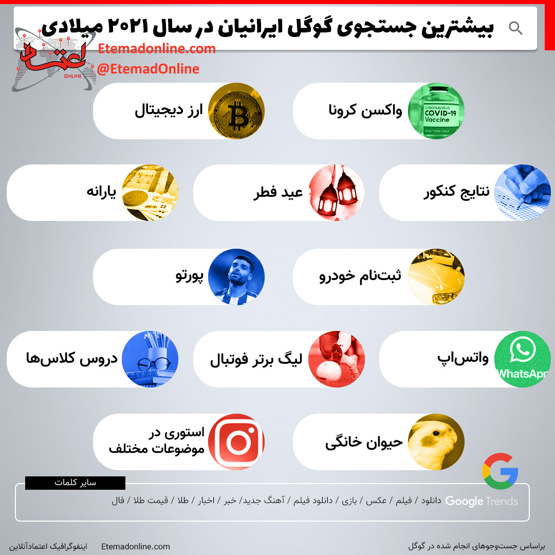 اینفوگرافیک| بیشترین جستجوی گوگل ایرانیان در سال 2021