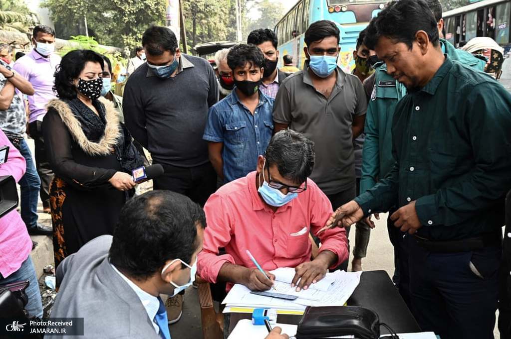 گرفتن جریمه ماسک نزدن توسط پلیس بنگلادش + عکس