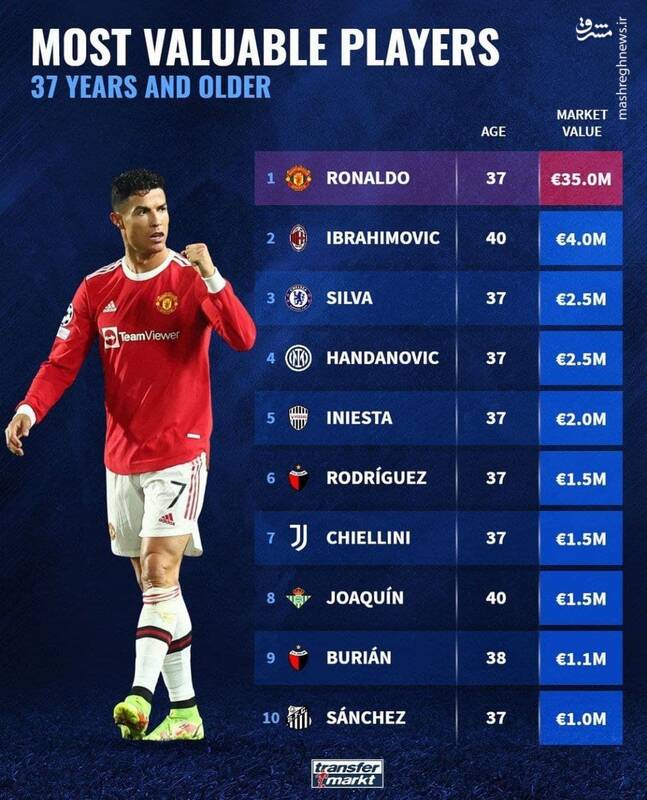 ارزشمندترین بازیکنان ۳۷ ساله و مسن‌تر + عکس