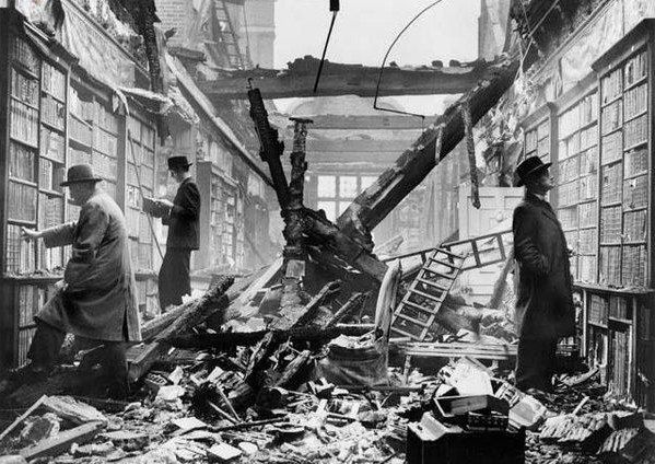 شیفتگان کتاب مشغول مطالعه در کتابخانه ویران شده + عکس