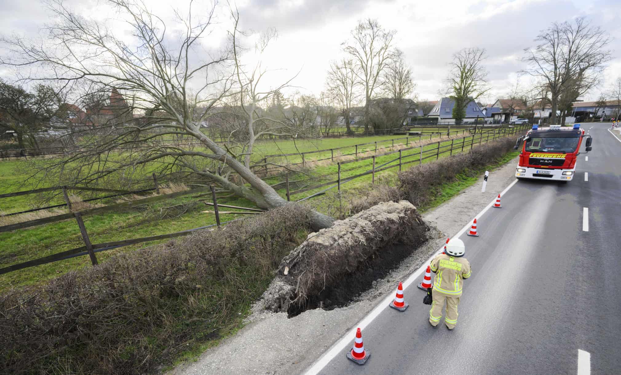 از ریشه درآمدن یک درخت بر اثر باد شدید در آلمان + عکس