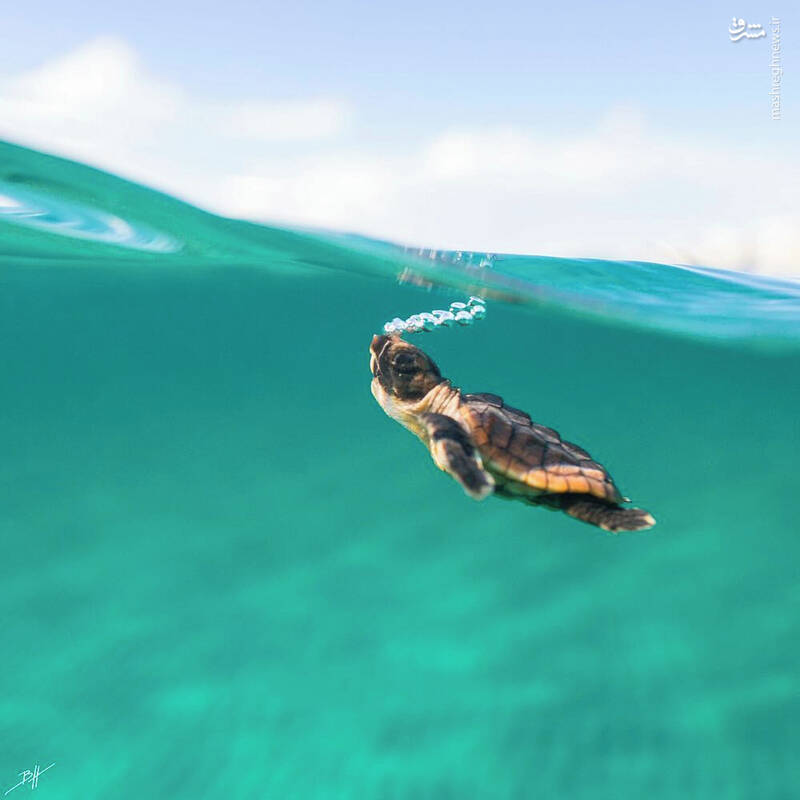شنای لاک‌پشت در آب + عکس