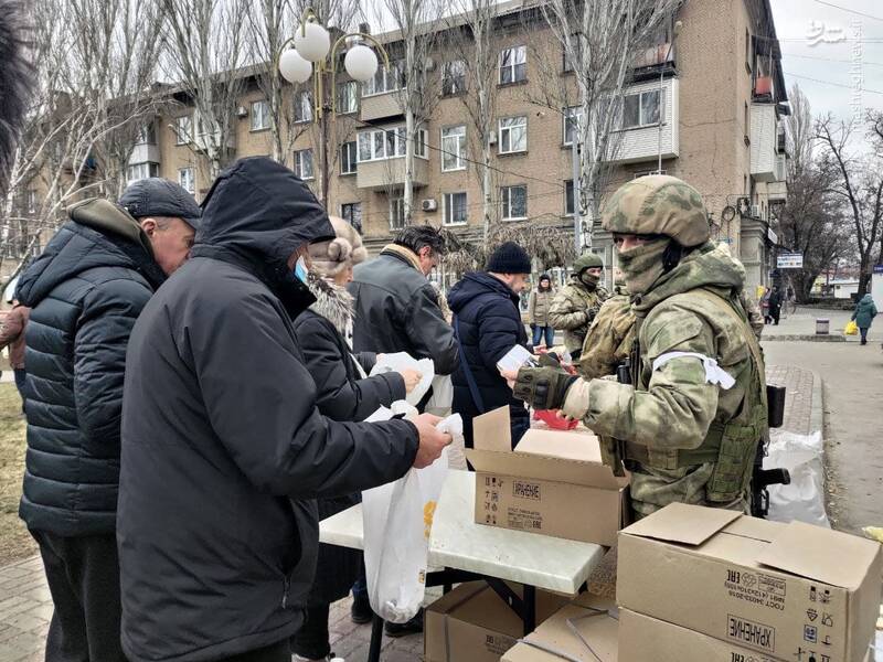 توزیع کمک‌های بشردوستانه توسط نیروهای روس + عکس