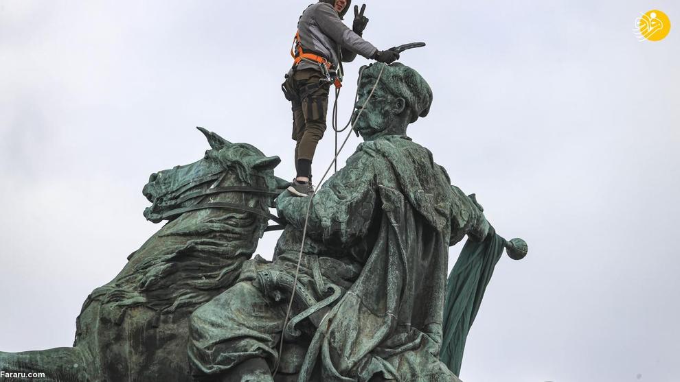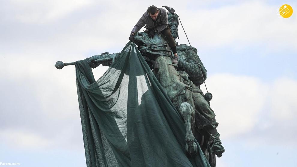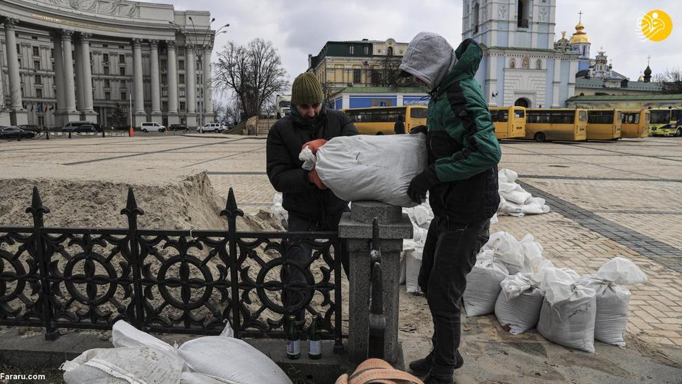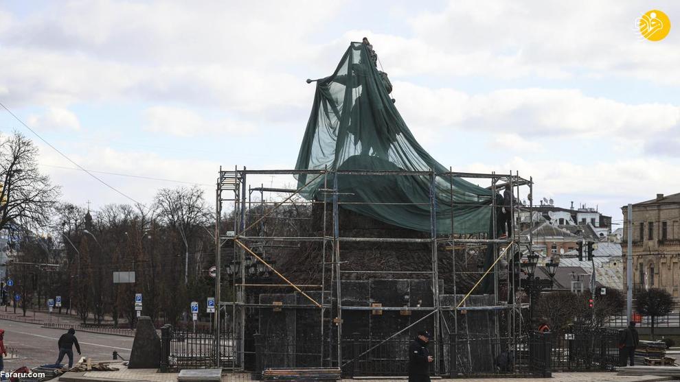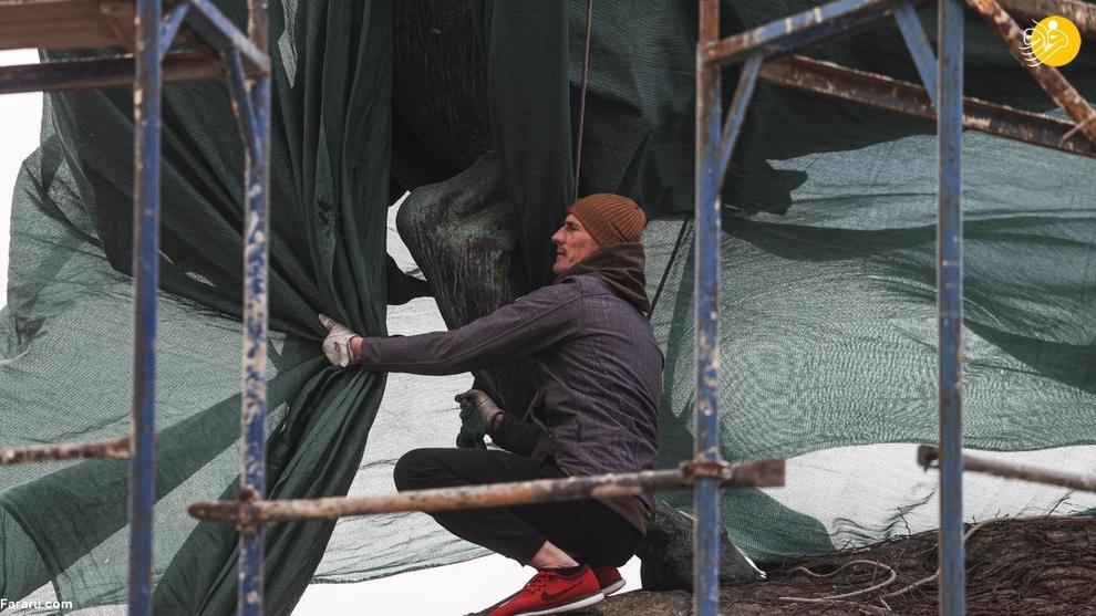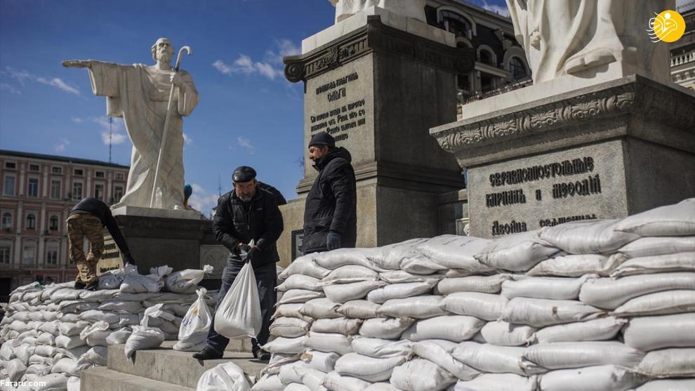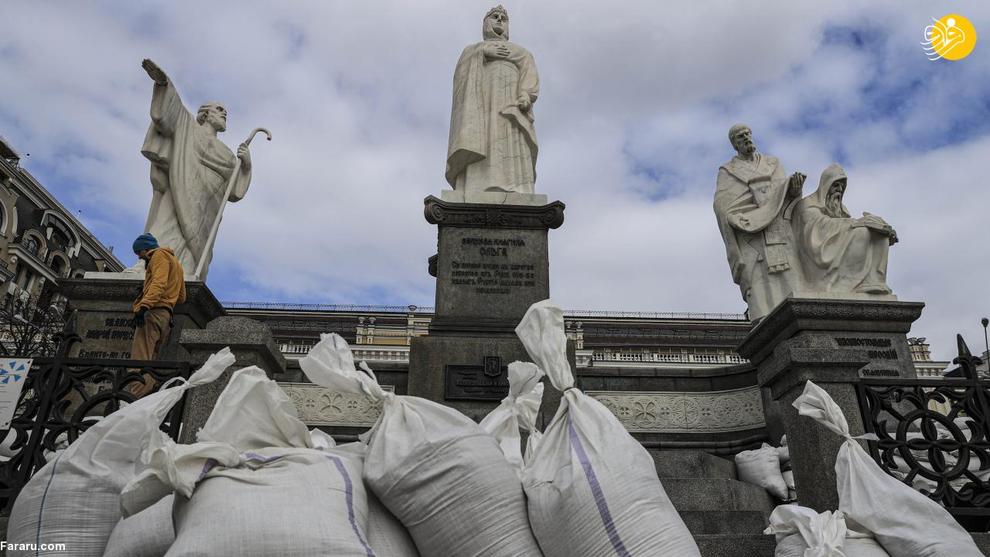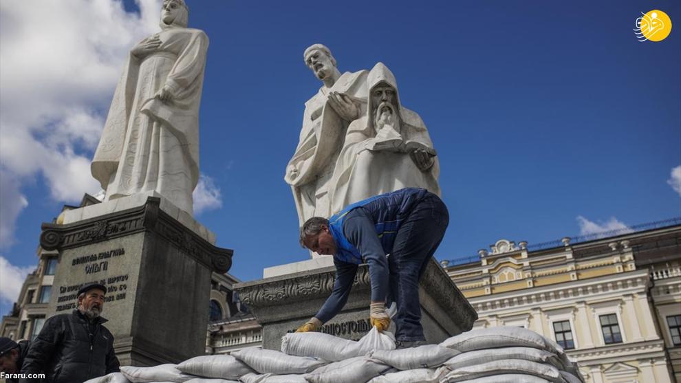 تلاش مردم کی‌یف برای محافظت از مجسمه‌ها + عکس