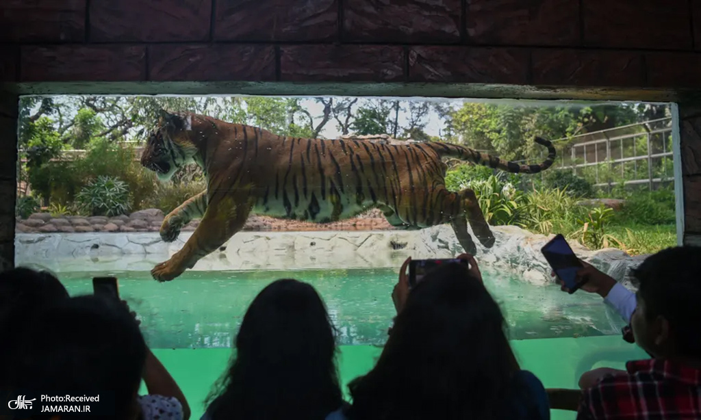 پرش ببر بنگال به درون استخر + عکس