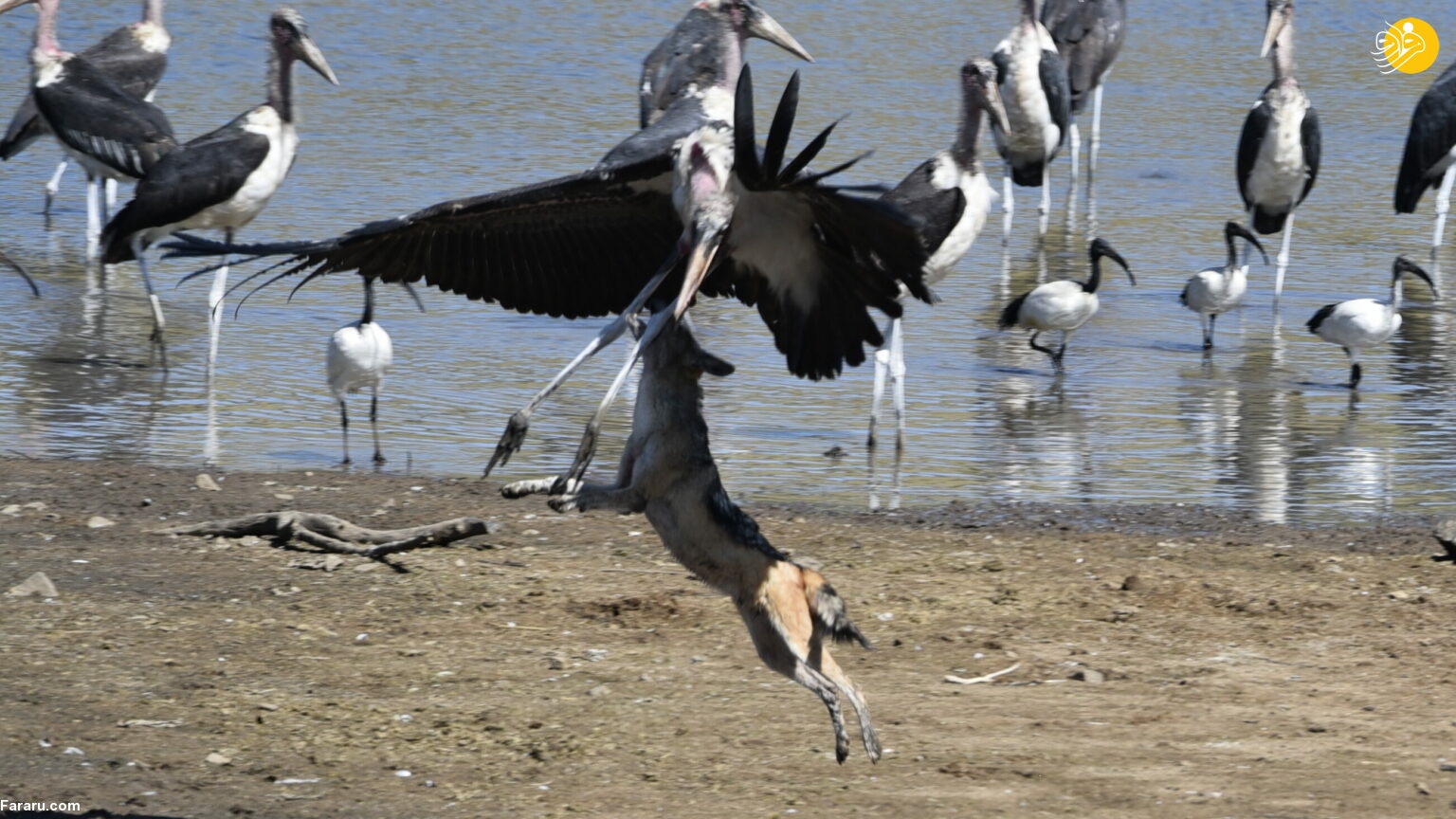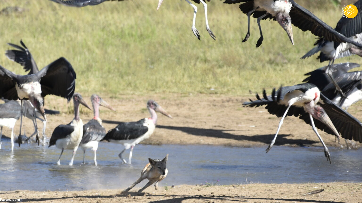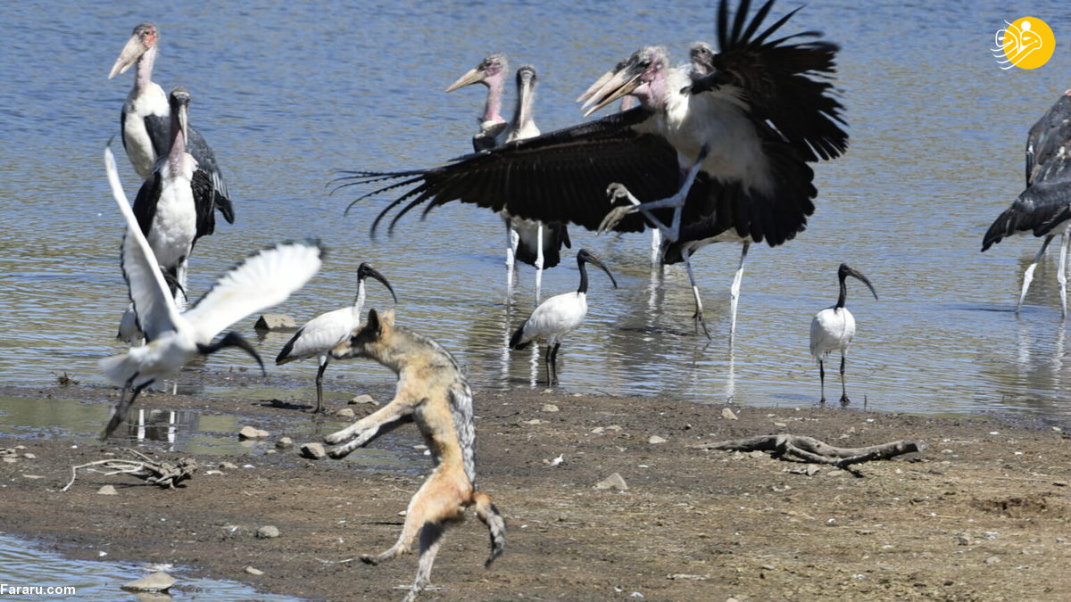 جنگ و درگیری شغال و لک لک + عکس
