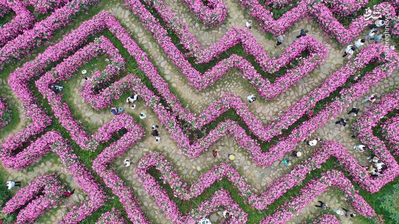 تصویر هوایی از باغ گل زیبا در چین + عکس