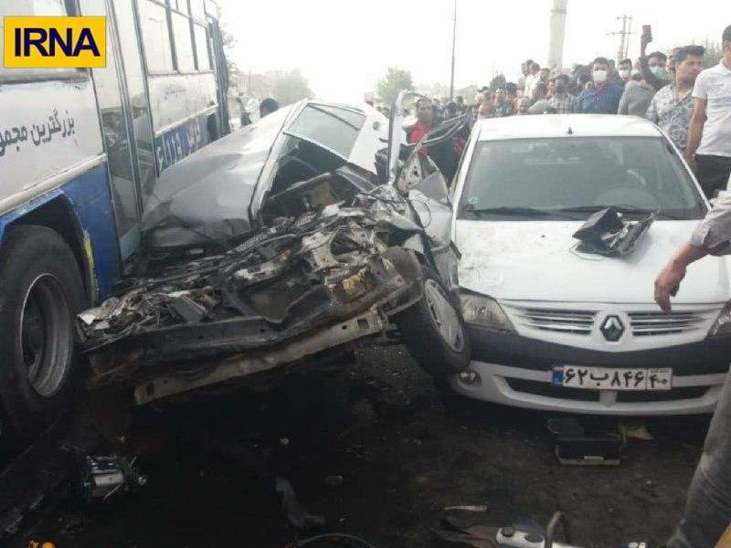 بلایی که اتوبوس شرکت واحد بر سر پرایدها آورد! + عکس