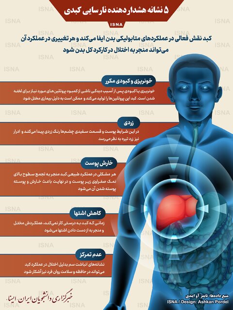 ۵ نشانه هشداردهنده نارسایی کبدی/اینفوگرافیک