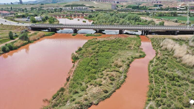 قرمز شدن آب رودخانه‌ای در ترکیه + عکس