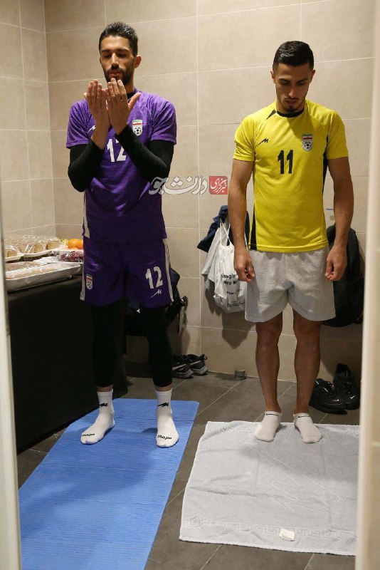 اقامه نماز دو بازیکن تیم ملی پیش از شروع بازی + عکس