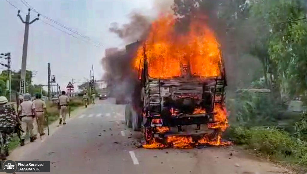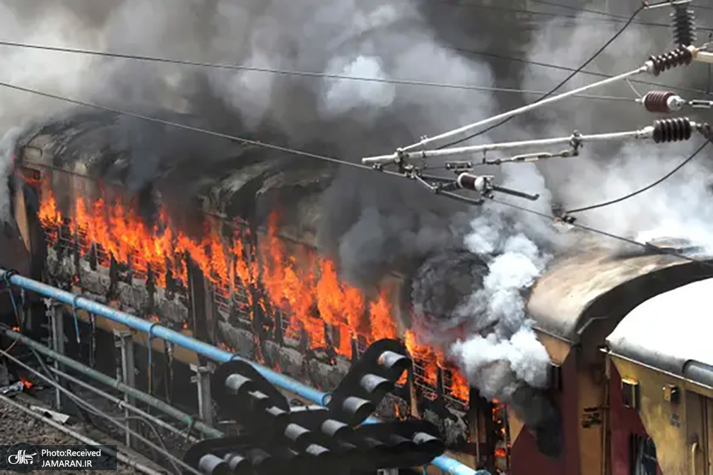آتش زدن قطار در هند توسط معترضان به طرح جدید دولت + عکس