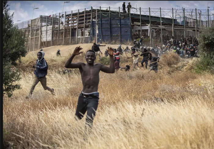 عبور مهاجران آفریقایی از موانع مرزی بین مراکش و اسپانیا + عکس