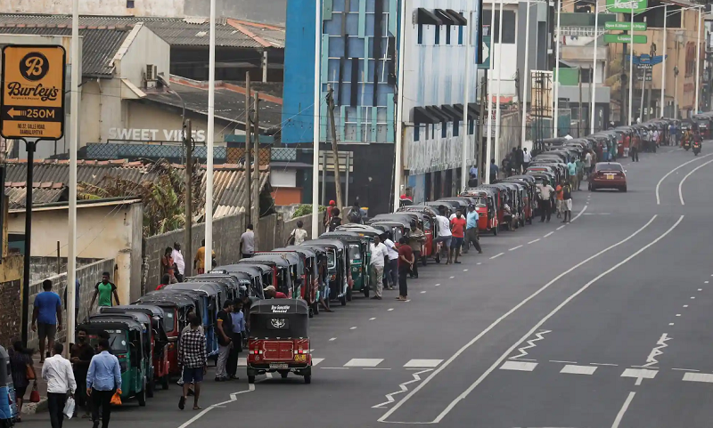 صف عجیب ریکشاها برای سوخت در سریلانکا + عکس