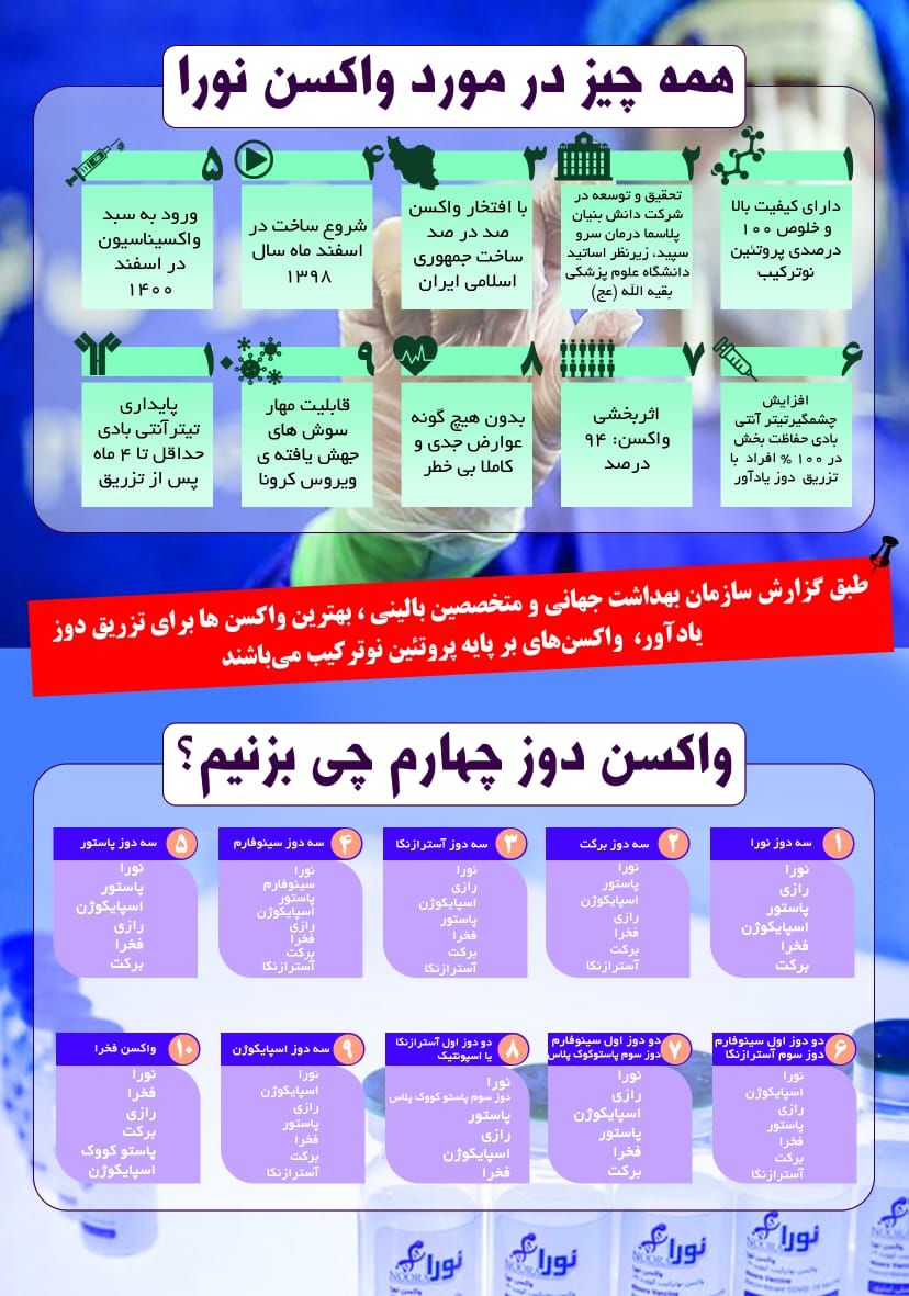 اینفوگرافیک| مشخصات واکسن نورا/ دُز چهارم چه واکسنی تزریق کنیم؟