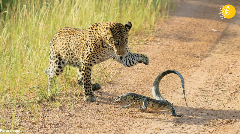 جنگ بزمجه با توله پلنگ! + عکس