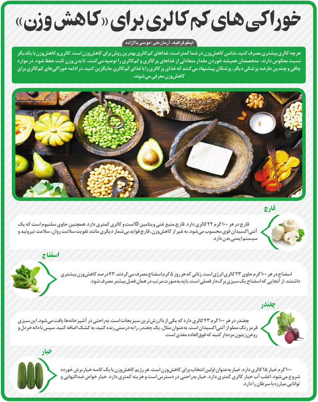خوراکی‌های کم کالری برای «کاهش وزن» / اینفوگرافیک