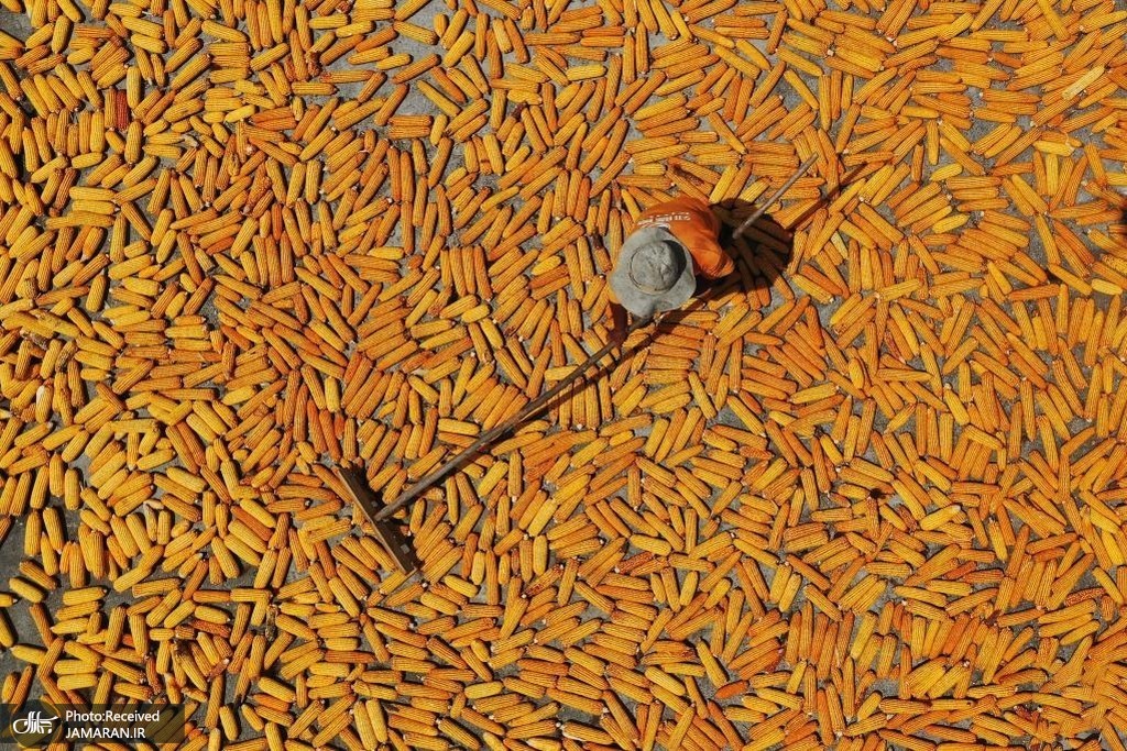 تصویری هوایی از خشک کردن خوشه‌های ذرت + عکس